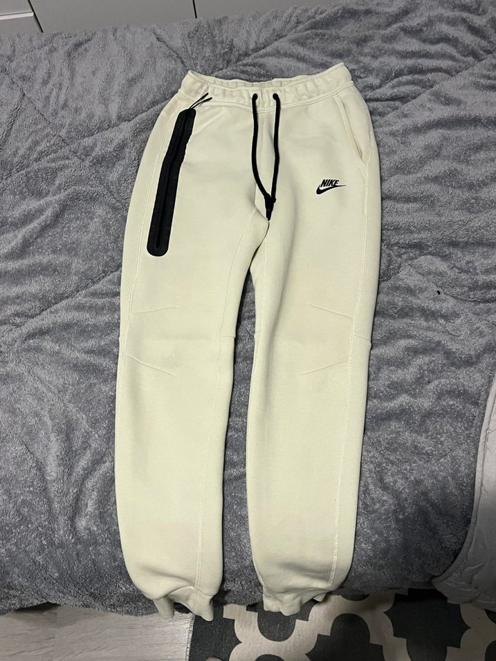 Nike beyaz jogger eşofman altı, siyah bağcık ve fermuarlı yan cep ile rahat kullanım sunar. Lastikli bilek ve bel kısmı vardır. orjinaldir.
