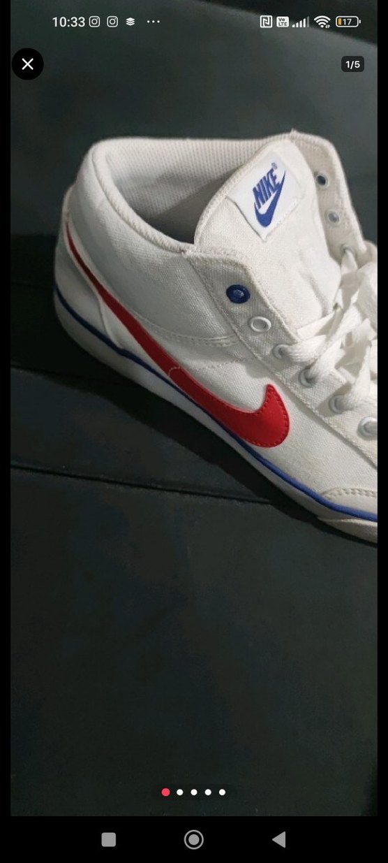 Nike beyaz kadın spor ayakkabısı, dolgu topuklu ve bağcıklı tasarıma sahiptir. Kırmızı işaretli, kauçuk malzemeden, sportif ve günlük kullanım için uygundur.