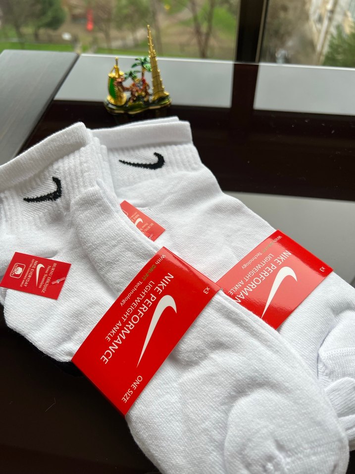 Nike beyaz mini erkek çorap, renkli baskılı detaylarla rahat ve fit yapıda. Kısa boy, Nike logosu ile athleisure tarzına uygun.