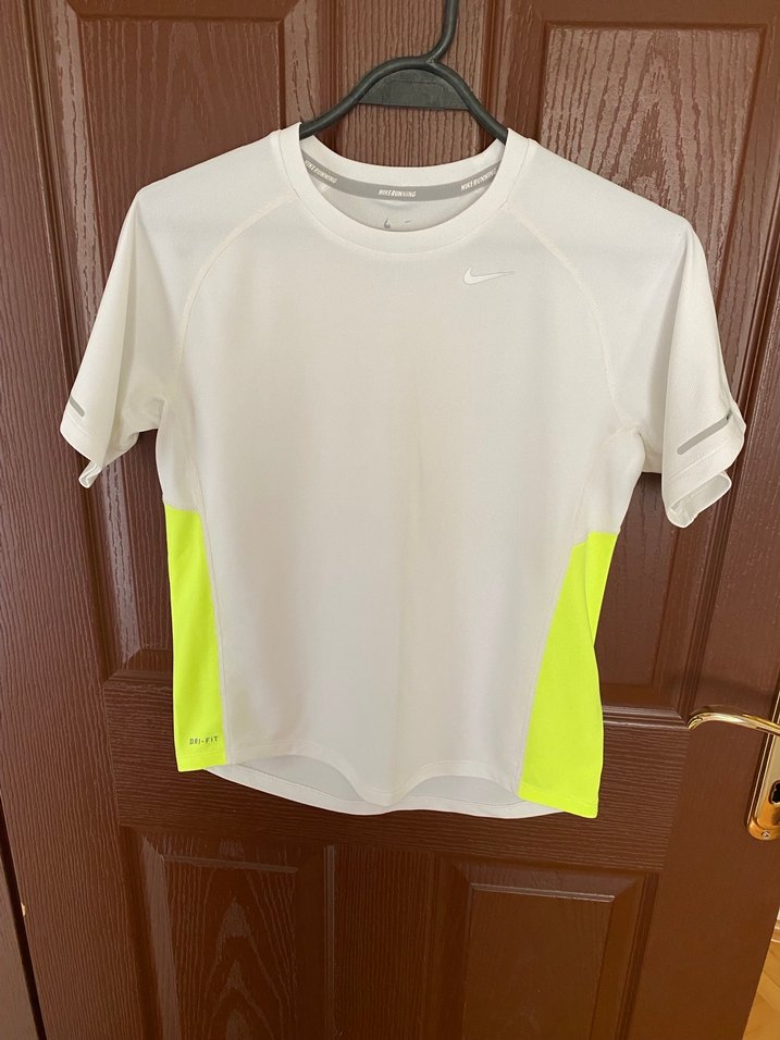 Orjinal Nike markadır. Kısa kollu, yuvarlak yaka, neon sarı yan detaylı erkek spor tişörtü. Rahat sentetik kumaştan üretilmiştir. Unisex bir üründür kız çocuklarda rahatlıkla kullanabilir. Çok şık ve çok tarz bir üründür. M beden (10-12 yaş için) uyumludur. Eni:45 cm, boyu:60 cm’dir. Çok az kullanıldı çok iyi durumdadır. Alana hayırlı uğurlu olsun.