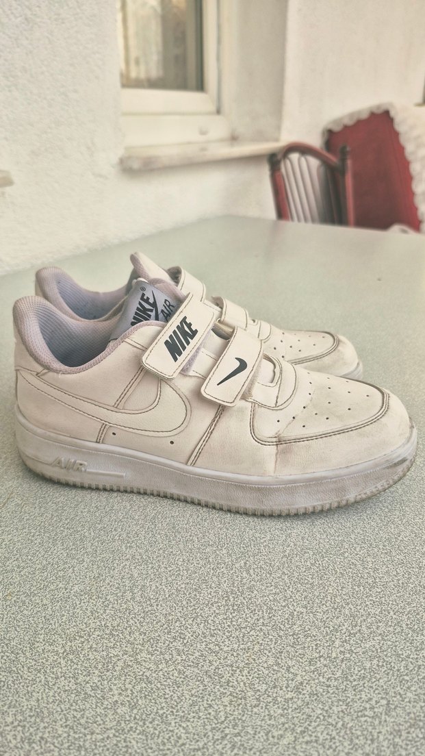 Nike beyaz platform topuklu spor ayakkabı, kauçuk tabanlı, cırt cırtlı, spor ve sokak giyimine uygun, desensiz ve pastel tonlarda.