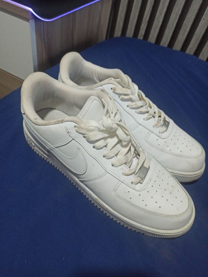 Nike beyaz, desen içermeyen, kauçuk malzemeden üretilmiş spor ayakkabı, spor ve sokak stili için zahmetsiz şıklık sunar.