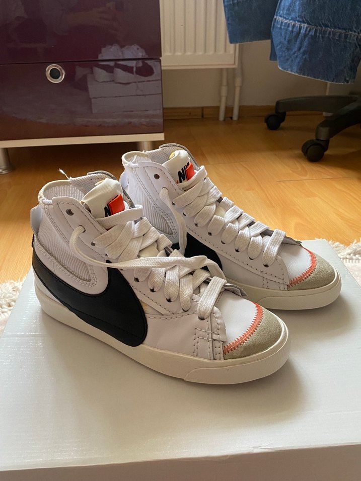 Nike Blazer Mid’77 Jumbo unisex çok temiz çok az kullandum bir kaç defa 38,5 numara orjinal üründür dolap yenilemek için satıyorum