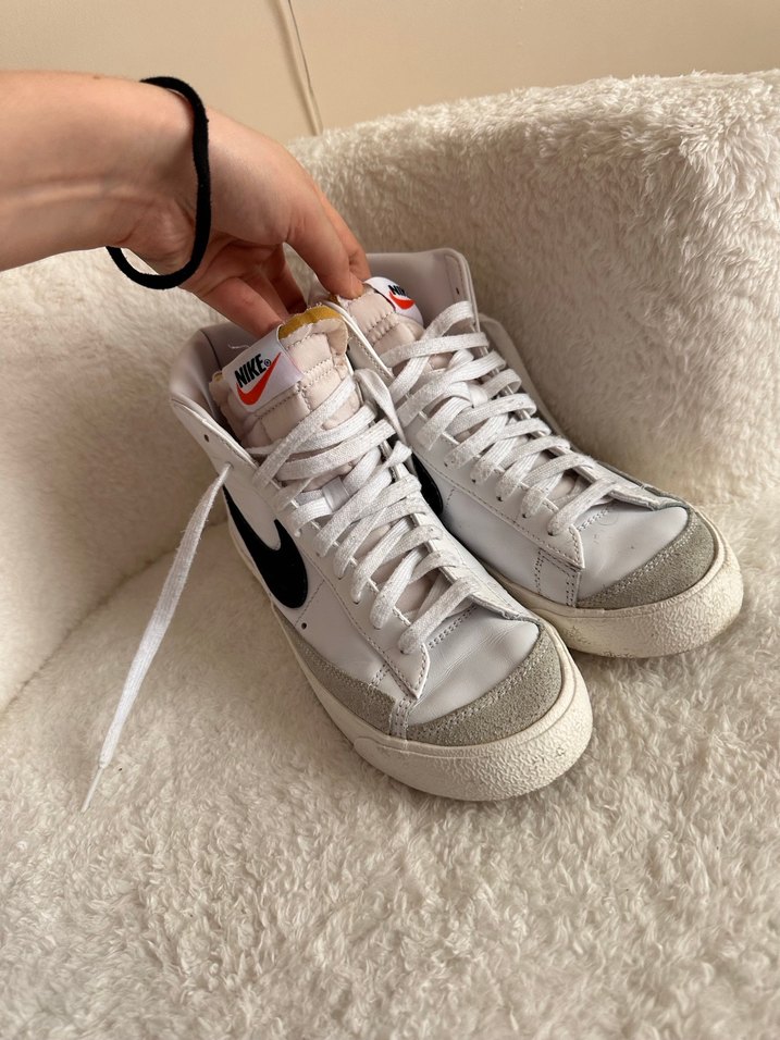 Nike beyaz kadın spor ayakkabısı, yüksek tabanlı, baskılı detaylı ve cırt cırtlı, günlük kullanım için uygun sokak stiliyle uyumlu. Çok az kullanıldı çok temiz yanlardaki siyah lekeler silince çıkıyor toz sneaks up mağazasından alındı orijinaldir içindeki etiketi ekledim Ordaki Qr kodu okutunca orijinalliğine oradan bakabilirsiniz
