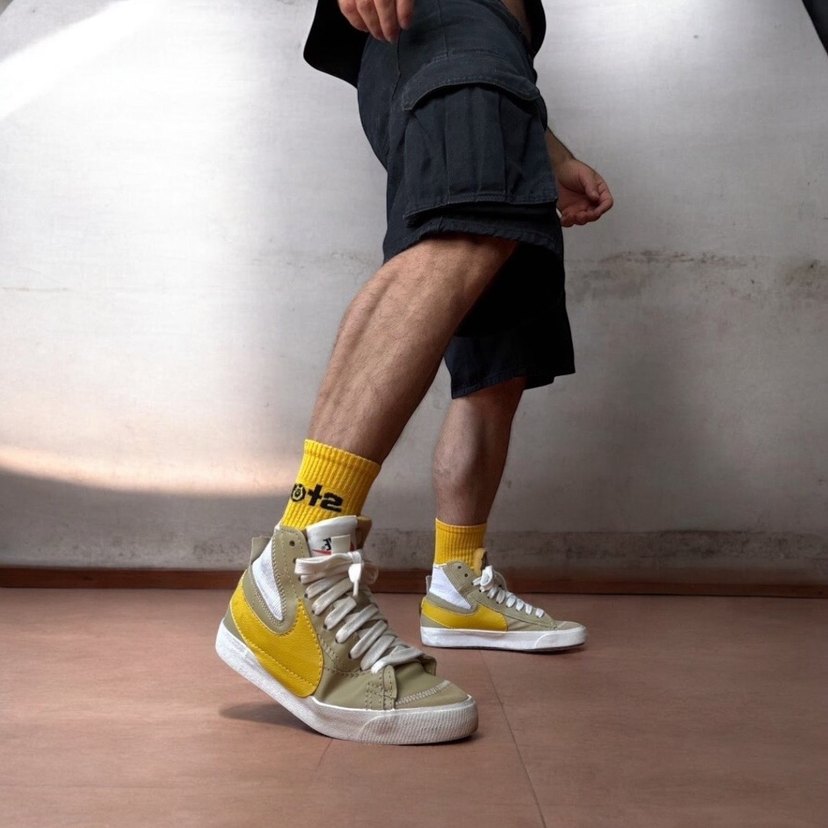 Nike Blazer Mid '77 - 41 Numara - Sarı/Beyaz Şık ve retro tasarımıyla dikkat çeken Nike Blazer Mid '77 modeli. 41 numara, sarı ve bej tonlarının kombinasyonuyla hem spor hem günlük stil için ideal. Yan paneldeki büyük Swoosh detayı, yüksek bilekli yapısı ve klasik kauçuk tabanı ile konfor ve tarzı bir arada sunar. Az kullanılmış, temiz durumda. Yumuşak deri ve süet paneller ile hem dayanıklı hem de uzun ömürlü bir kullanım sağlar. Ürün Detayları: • Numara: 41 (EU) Durum: Az kullanılmış, temiz. Renk: Sarı / Bej / Beyaz Model: Nike Blazer Mid '77 Orijinallik: %100 orijinal Nike ürünü.