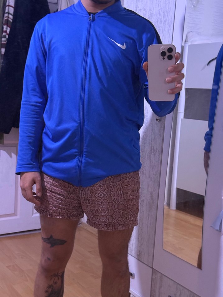 Erkekler için mavi renkli, uzun kollu, fermuarlı ve bol kesim ceket. Koyu tonlarda, desen içermeyen spor tarzında tasarlanmıştır. Nike logosu bulunur.Orjinal üründür, etiketi ve barkodundan anlayabilirsiniz.Herhangi bi defoma yırtık mevcut değildir.Benim boyum 180, 80kgyim XXL olmasına rağmen fotoğraftaki gibi durmaktadır. Alıcısına şimdiden hayırlı olsun….