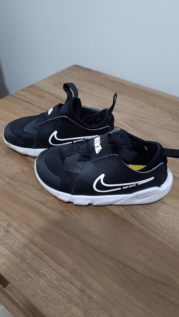 Nike marka, siyah renkli, baskılı desenli q çocuk spor ayakkabısı.