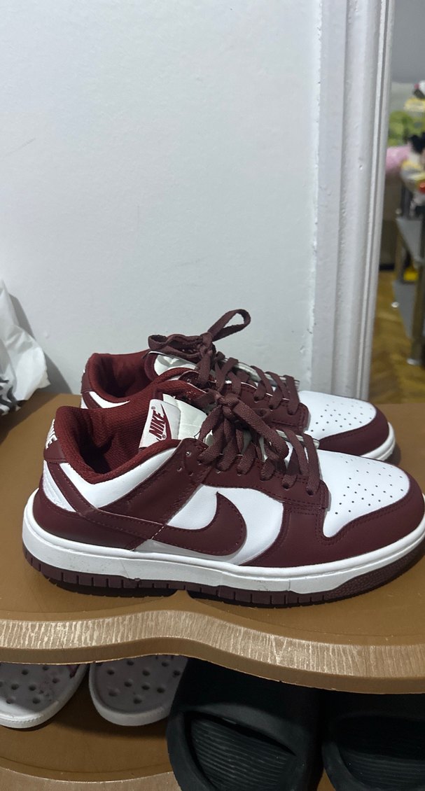 Lacivert kahverengi ve beyaz renklerde Nike kadın spor ayakkabısı, stiletto topuklu ve lastik tabanlı, sportif sokak giyimi için uygun.