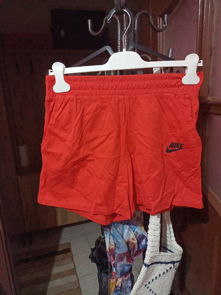 Nike marka, elastik bel detaylı, kırmızı renkli, sentetik kumaştan mini şort, spor ve sokak stiline uygun.