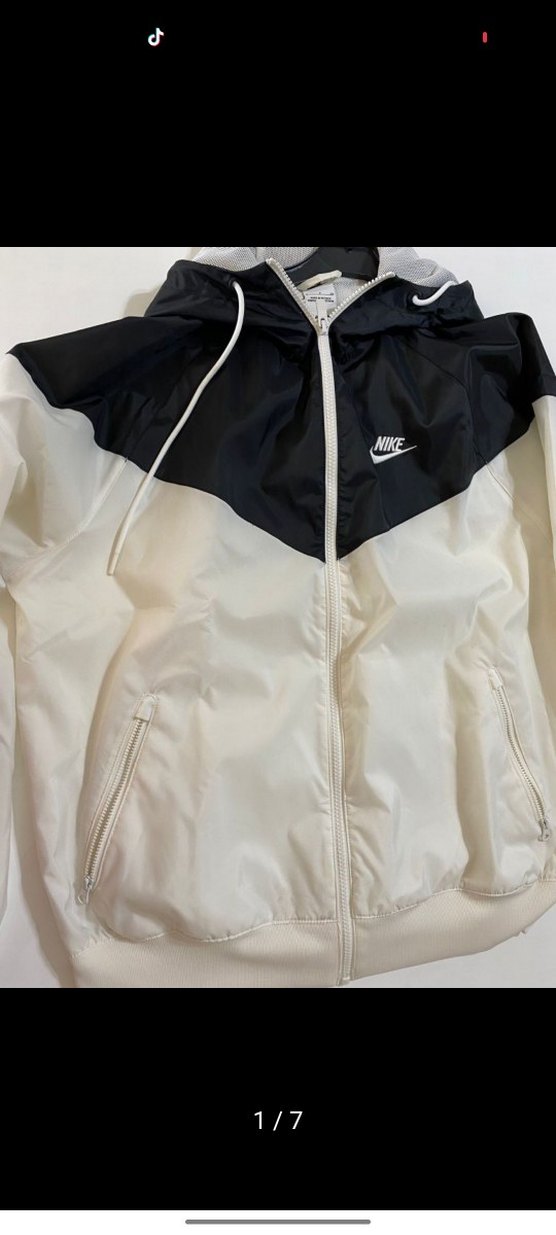 Nike erkek yağmurluk, fermuarlı ve uzun kollu, sentetik kumaştan, beyaz ve siyah renkte, sokak stili için uygun. ️Orijinal standart beden.Hiç kullanılmadı tertemiz