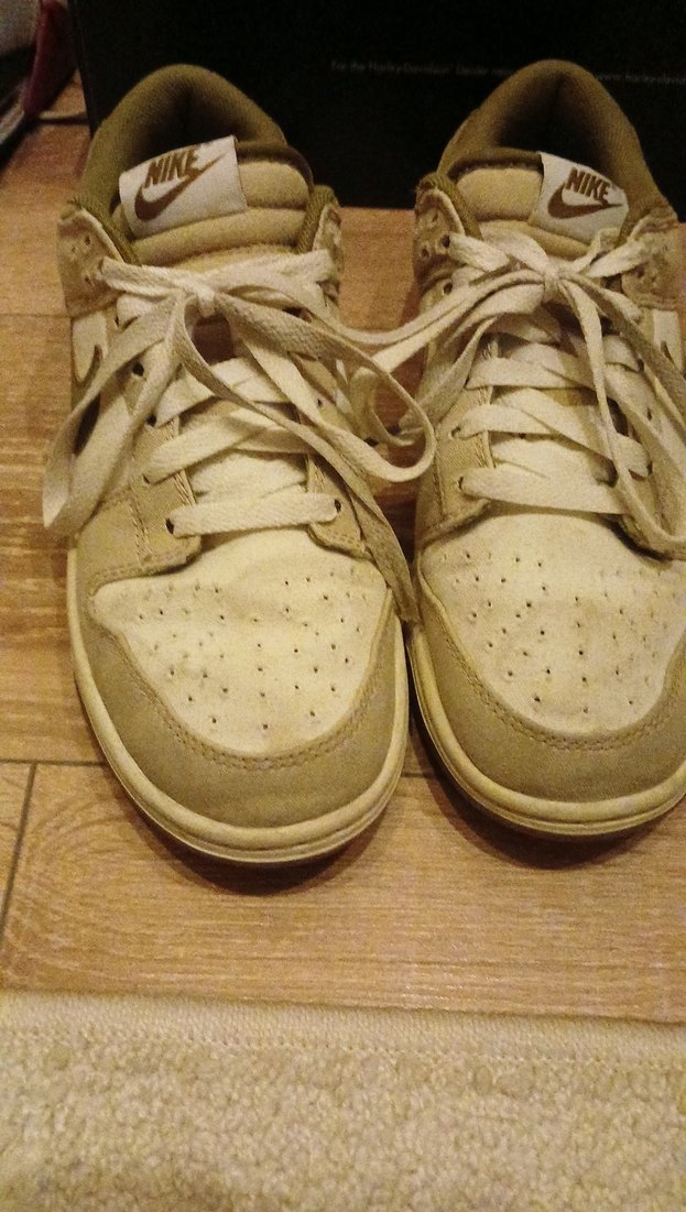 Nike markalı, bej renkte süet malzemeden üretilmiş, bağcıklı ve düz tabanlı çocuk spor ayakkabısı. Sokak giyimine uygun, pastel tonlarda sade tasarım.