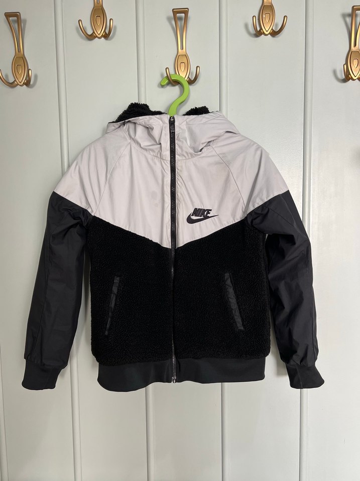 Fermuarlı kapşonlu, yumuşak kumaştan üretilmiş Nike erkek çocuk ceketi.Omzunda yırtık bulunmaktadır..Gri ve siyah renk bloklu tasarım, trend sokak stili için uygundur.
