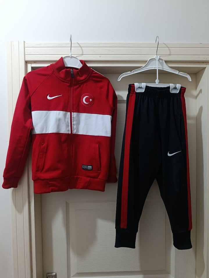 Nike marka, kırmızı ve siyah renklerde, yumuşak ve sıcak kumaştan erkek çocuk eşofman takımı. yırtık sökük yoktur sol dizde hafif bir incelme mevcuttur fakat göze batmamaktadır hak geçmesin diye belirtmek istedim iyi durumdadır oğluma artık küçüldüğü için satıyorum dolabımda çocuk kıyafetleri orijinal spor ayakkabılar tesettür giyim mevcuttur göz atmayı unutmayın teklifler değerlendirilir not rengi fotoğraftakine nazaran Bir tık açıktır. ama yine de canlı ve diri bir rengi vardır rahatlıkla çocuğunuza giydirip dışarı çıkarabilirsiniz küçük olduğu için ben satıyorum