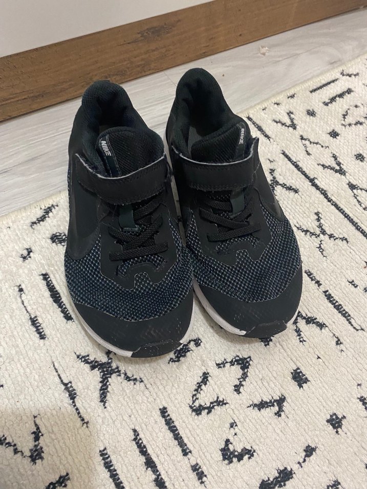 Sadece Nike işareti yıkamaya bağlı silinmiştir onun dışında yırtığı felan yokturErkek çocuklar için siyah sokak tarzı spor ayakkabılar. Kauçuk taban ve kolay kullanım için cırt cırtlı bant içerir.