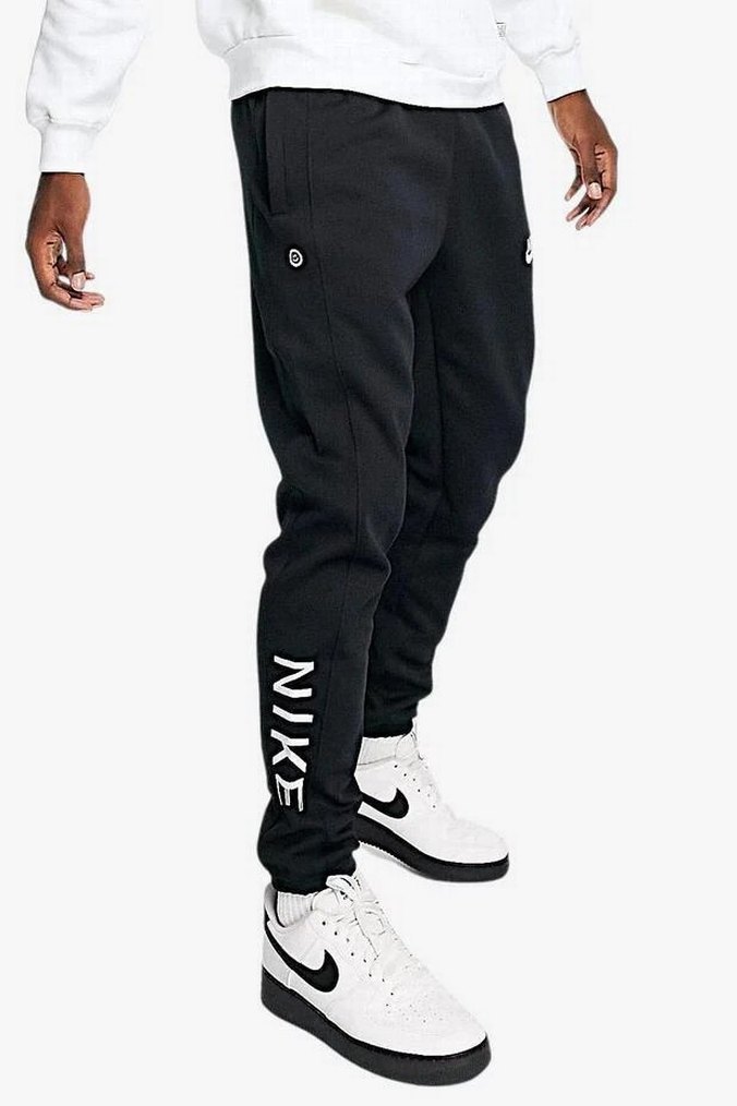 Siyah, rahat kesim, yumuşak ve sıcak dokulu erkek eşofman altı. Bacakta "NIKE" yazısı ve sade tasarım ile spor tarzı için uygundur.