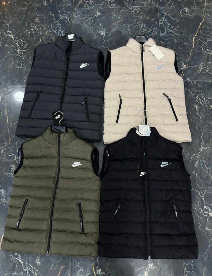 Nike kolsuz mini montlar, yüksek yakalı, fermuarlı cepli ve yumuşak, sıcak kumaştan üretilmiştir. Siyah, bej renk seçenekleriyle.