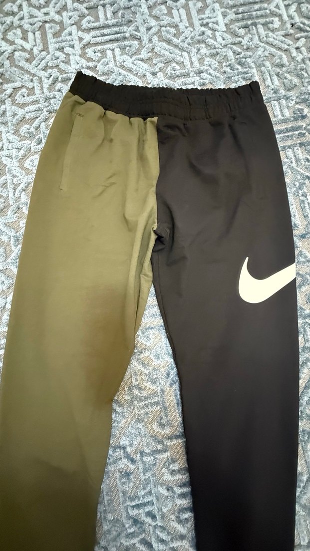 Nike erkek spor eşofman altı, bol kesim ve drapeli tasarıma sahip, gri ve siyah renklerde, spor ve sokak modası için uygun.
