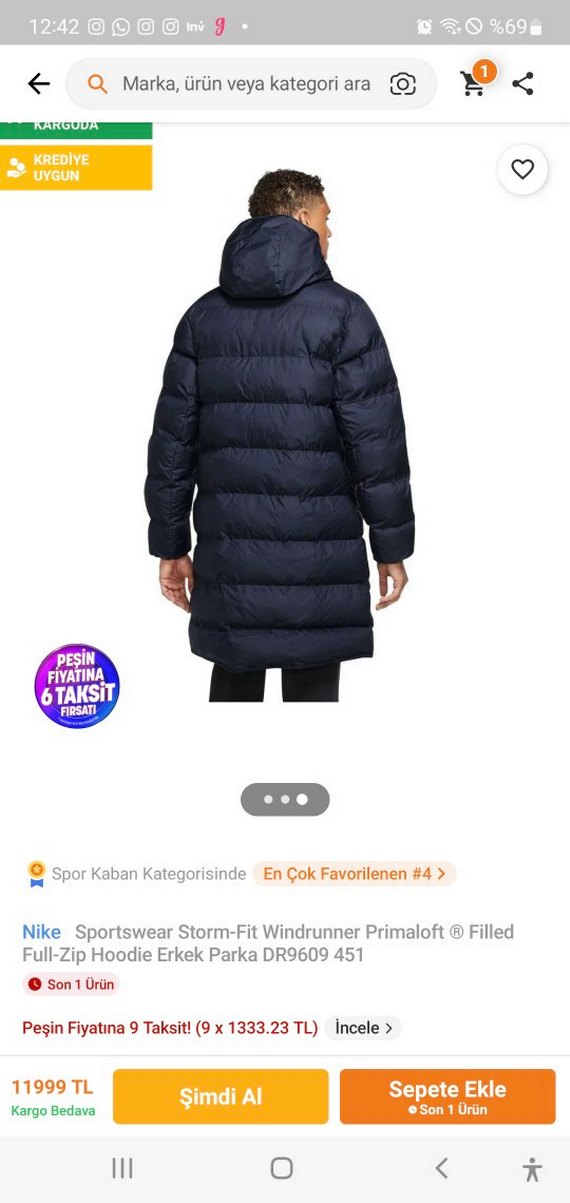 Nike erkekler için tam fermuarlı burnuna kadar kapanıyor, kapüşonlu, Primaloft dolgulu lacivert uzun mont. Rüzgar geçirmez ve sıcak tutar. İç cebi mevcut. boyum 1.75 ve mont dizimden biraz yukarıda kalıyor. Çok iyi ısıtıyor. Bu yıl küçük geldiğinden satıyorum. teklif verebilirsiniz makul ölçüde