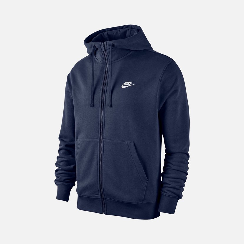 Nike erkek lacivert fermuarlı sweatshirt, kapüşonlu ve uzun kolludur. Yumuşak kumaştan yapılmış, spor ve günlük kullanım için uygundur