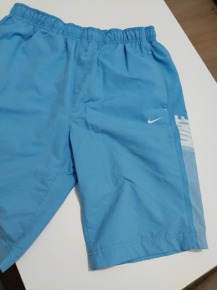 Nike markalı, parlak mavi renkte, desen içermeyen erkek mayo şortu. Lastikli bel kısmı bulunur. cepli