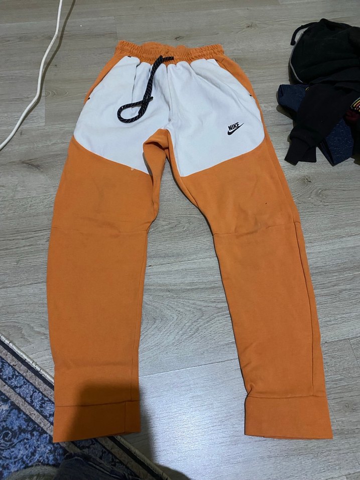 Nike erkek turuncu-beyaz, rahat kesim ve kemerli eşofman altı. Yumuşak, sıcak kumaştan, spor ve günlük kullanım için uygundur. ♂️