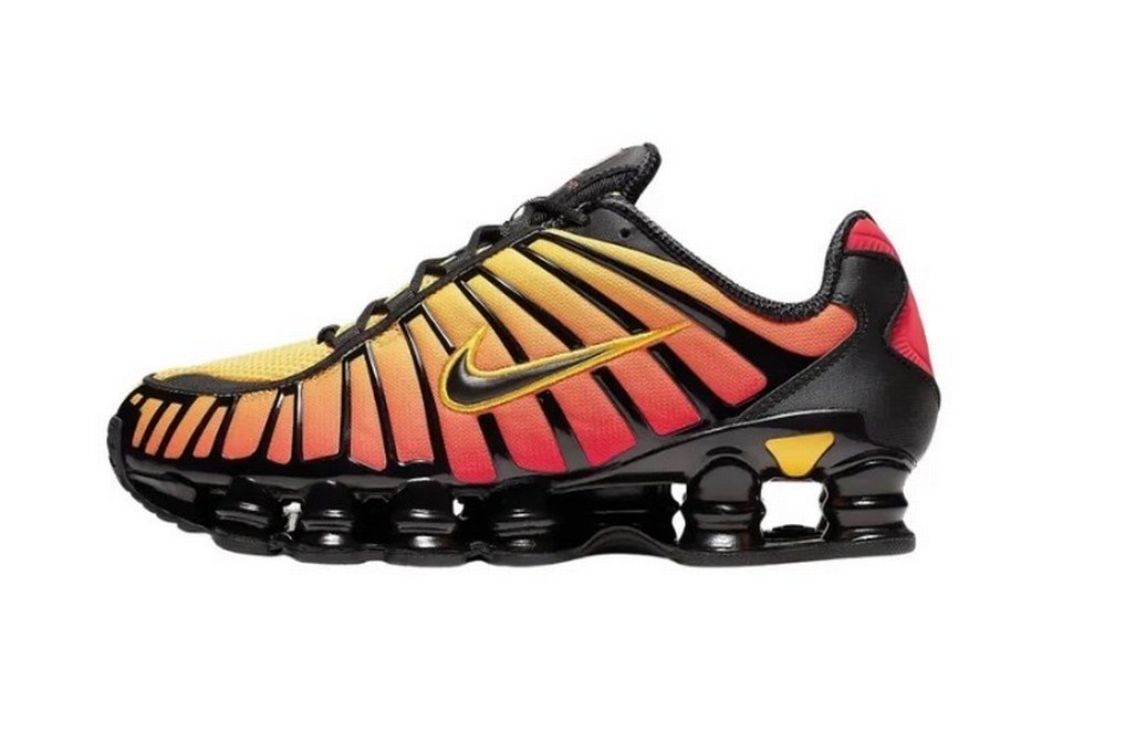 Nike marka, koyu turuncu tonlarında tie-dye desenli, fırfır detaylı ve kauçuk tabanlı erkek spor ayakkabısı.