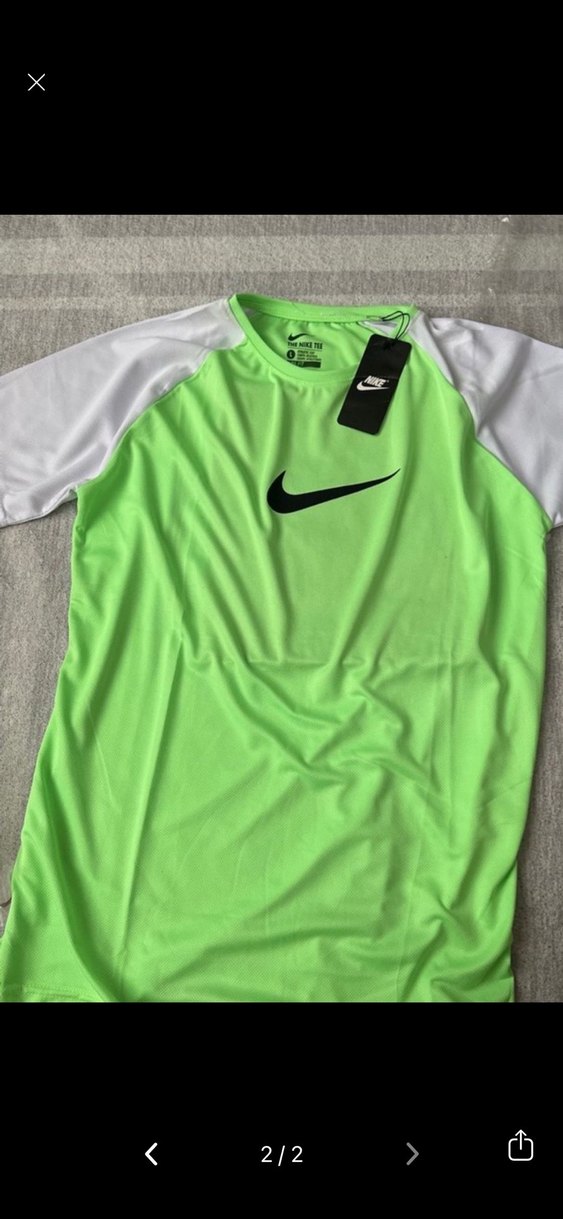 Nike erkek tişörtü, beyaz kısa kollu ve canlı yeşil renkte, bol kesim ve sentetik kumaştan üretilmiştir. Önünde baskılı Nike logosu vardır. Spor ve rahat stil için uygundur.