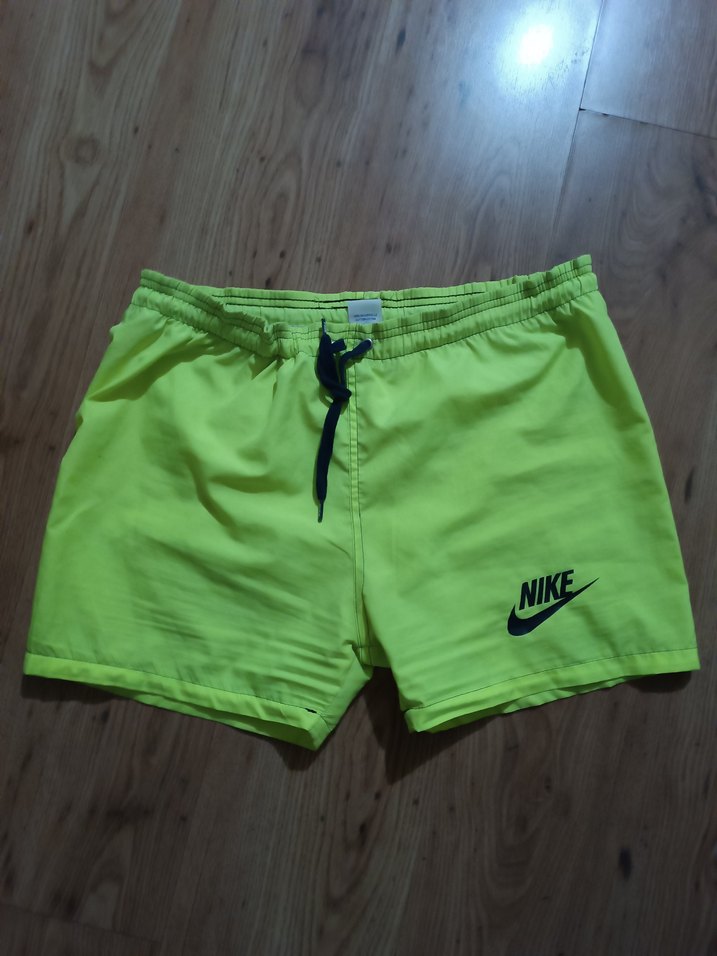 Nike erkekler için canlı yeşil renkte, belden bağlamalı ve dar kesim mini şort mayo. Düz ve desensiz, Nike logosu ile sade bir görünüm sunar. defosuz hic kullanilmamis