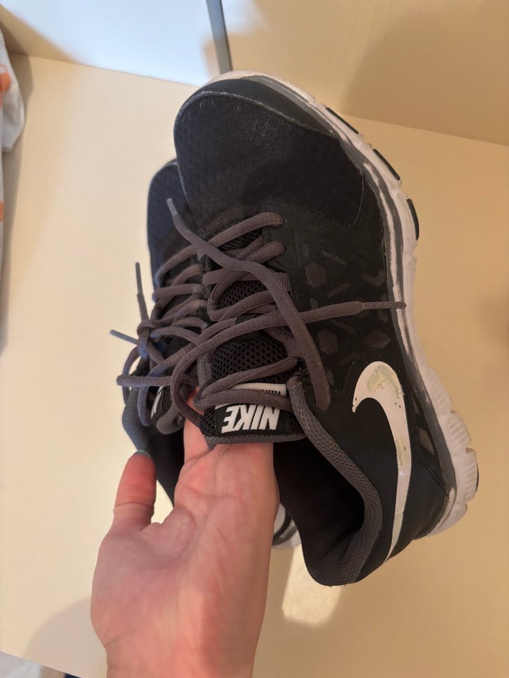 Nike marka, gri renkli, bağcıklı ve kauçuk tabanlı kadın spor ayakkabısı, günlük ve spor kullanıma uygundur. Kusurları fotoğrafta görünen gibidir