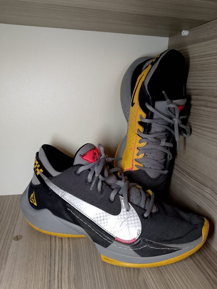 Nike gri basketbol ayakkabısı, kauçuk taban, baskılı detaylar ve cırt cırtlı bant ile güvenli kullanım sağlar. Sokak stili ve spor için uygundur. freak 2
