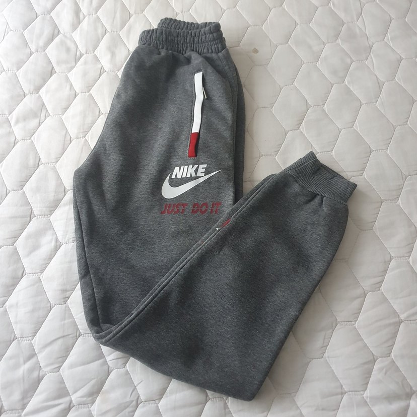 Gri renkli, bol kesim, yumuşak ve sıcak kumaştan üretilmiş, fermuarlı cepleri olan Nike baskılı erkek çocuk sweatpant. Rahat ve şık sokak tarzı için uygun. Boy 97 cm.