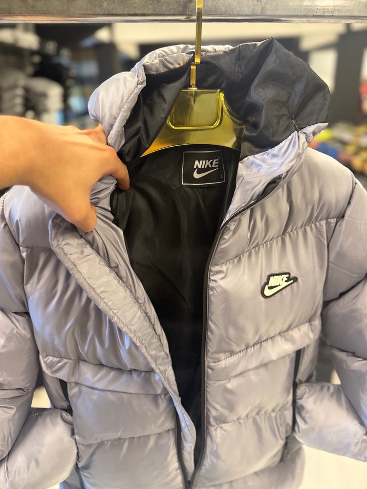 Nike gri erkek mont, yüksek yakalı ve uzun kolludur. Sentetik kumaştan üretilmiş, fermuarlı ve spor şıklığı için ideal, normal boyda bir monttur.