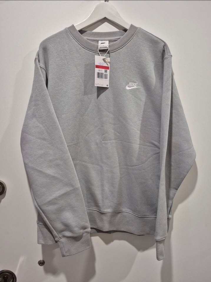 Nike markalı, gri renkli, uzun kollu, yuvarlak yaka ve rahat kesime sahip sweatshirt. Sade ve yumuşak dokulu kumaştan üretilmiştir. Günlük sokak giyimi için uygundur.