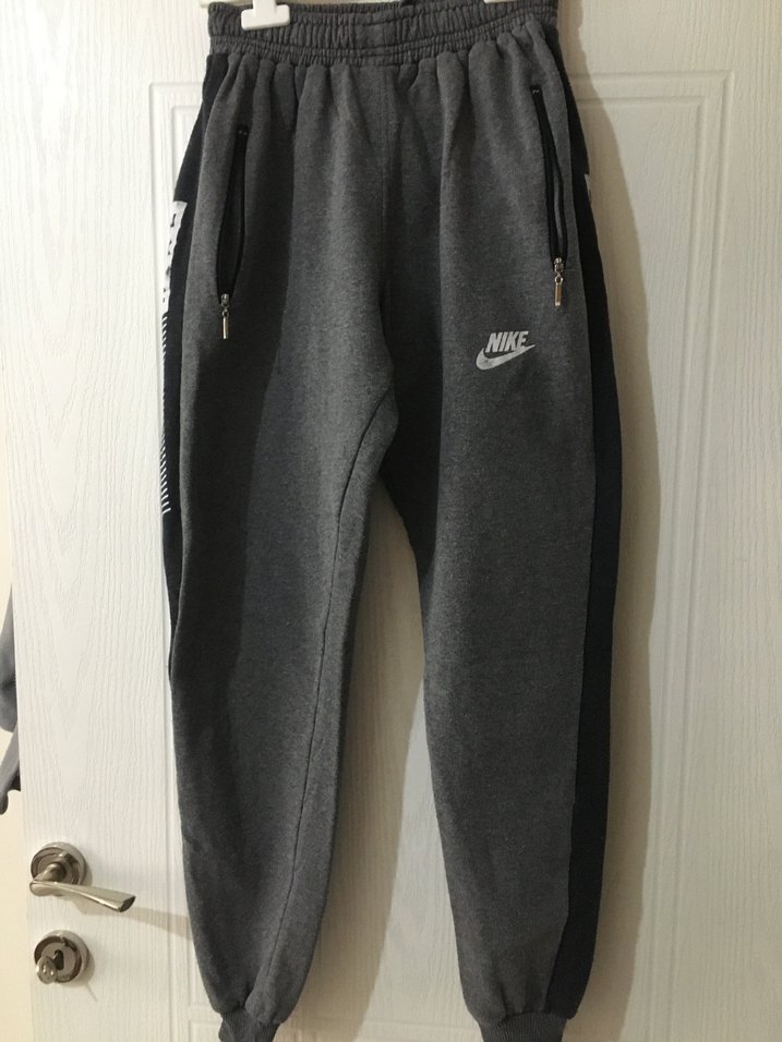 Nike markalı, gri renkli, fermuarlı ceplere sahip, rahat kesim erkek eşofman altı. Yumuşak ve sıcak kumaştan üretilmiş, spor ve günlük kullanım için uygundur. ♂️
