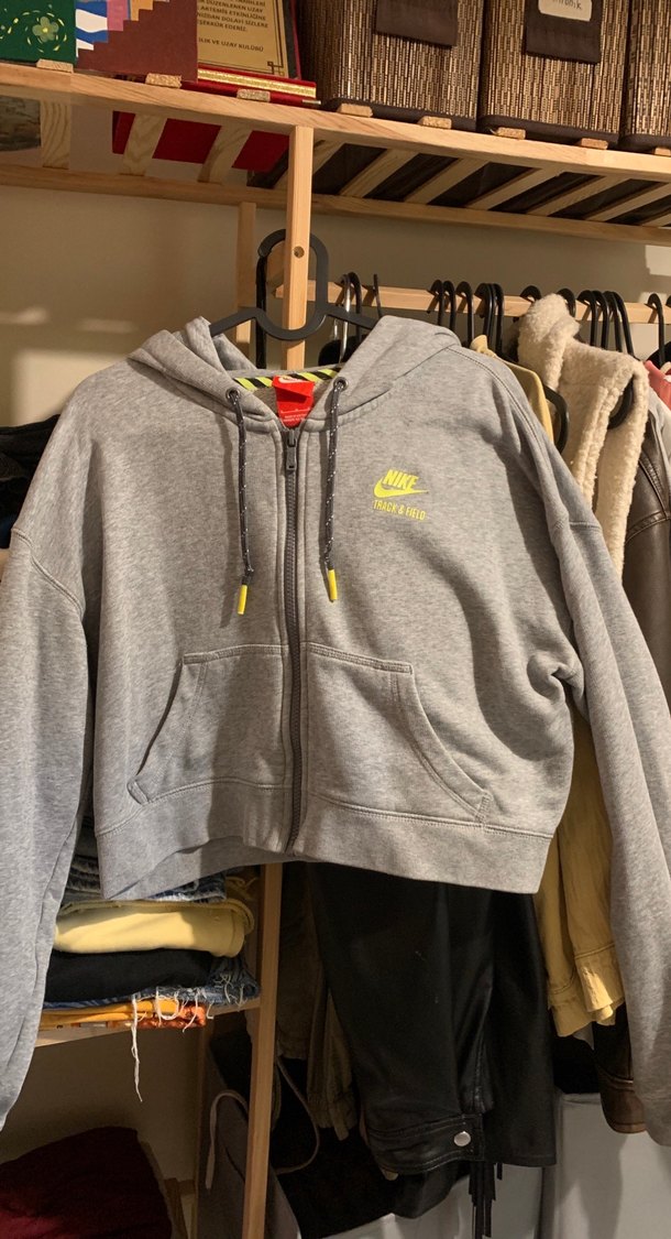 Nike gri fermuarlı sweatshirt, uzun kollu ve fitted kesimlidir. Yumuşak ve sıcak kumaştan üretilmiş, baskılı logo ve bisiklet yaka içerir. ♀️