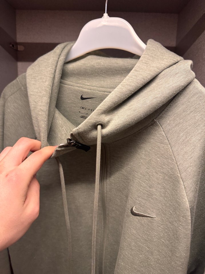 Nike marka, gri renkli, fermuarlı, uzun kollu, bisiklet yaka, yumuşak kumaştan yapılmış, günlük kullanıma uygun fitted sweatshirt.