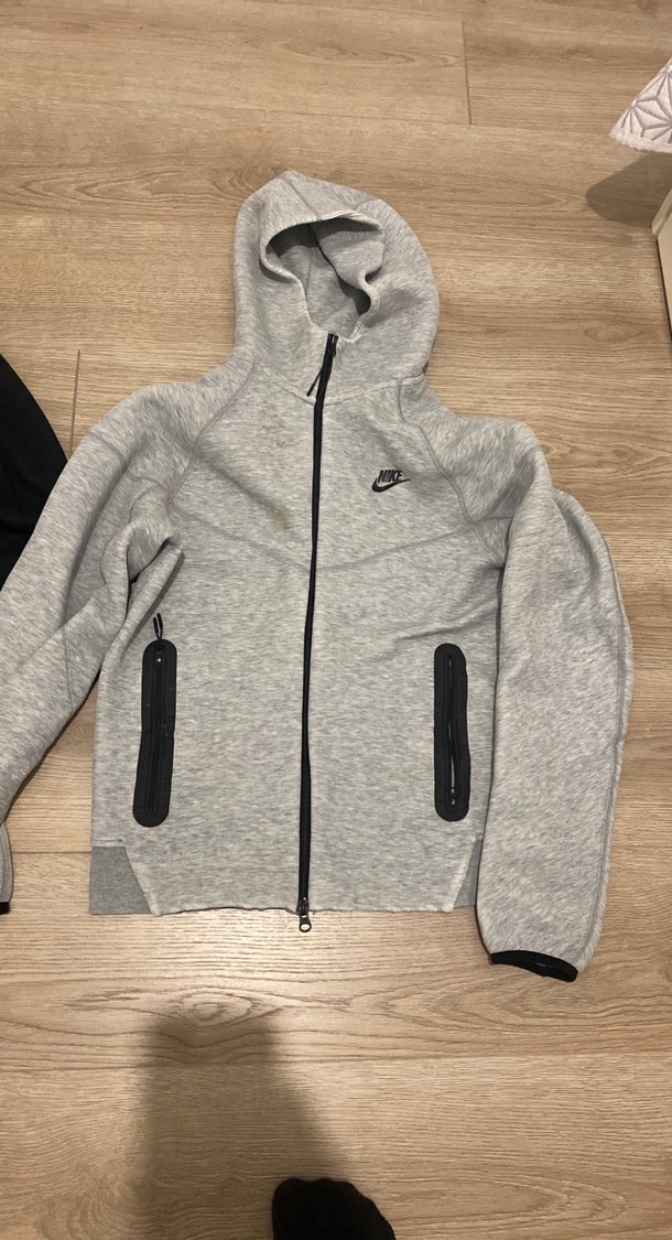 Nike markalı, gri renkte, kapüşonlu ve fermuarlı erkek sweatshirt. Uzun kollu, yumuşak kumaştan üretilmiş, spor ve günlük kullanıma uygun. ♂️
