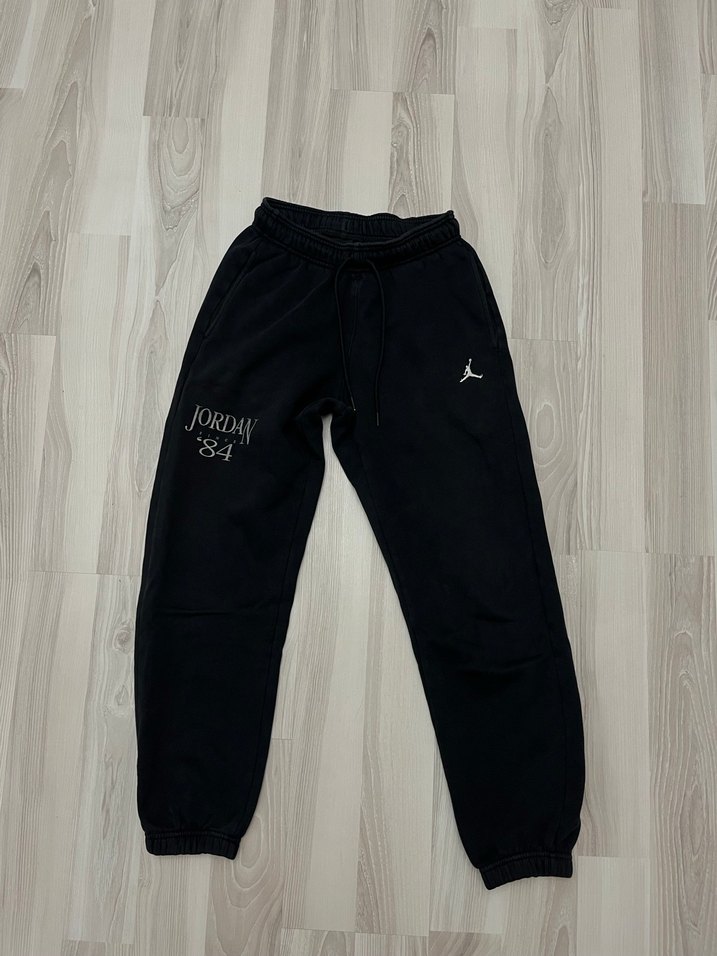Rahat kesim siyah eşofman altı, yumuşak ve sıcak kumaştan, elastik bilek detaylı. '84' ve 'Jordan' baskılarıyla şık ve rahat bir tarz sunar.