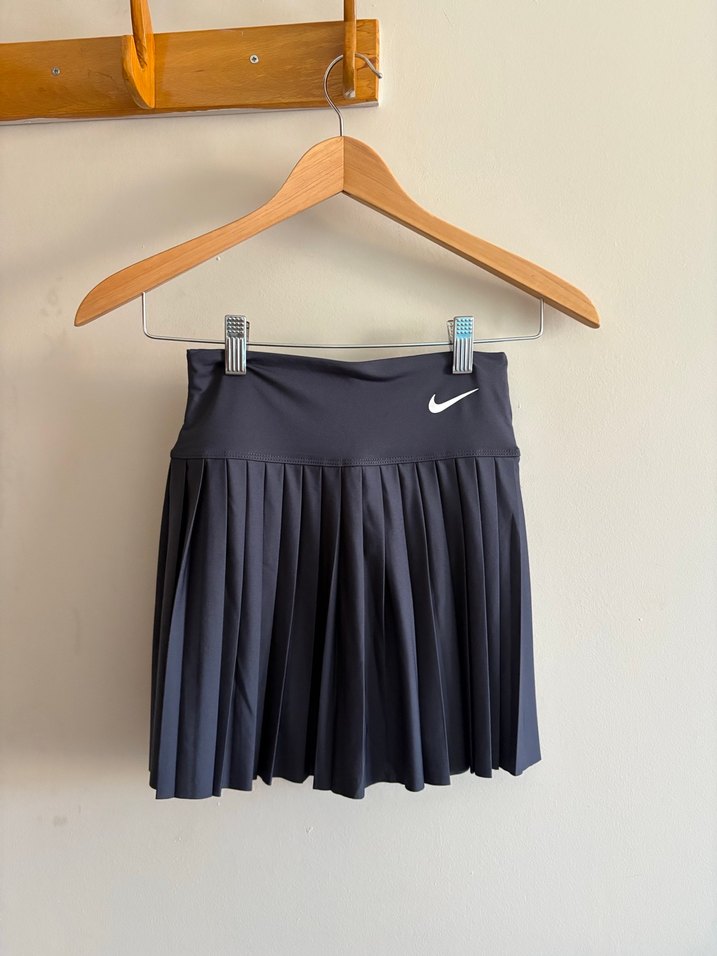 Nike markalı, pilili ve kısa kesim mini şort etek. renkte, sentetik kumaştan yapılmış, sportif ve şık bir tasarıma sahiptir.