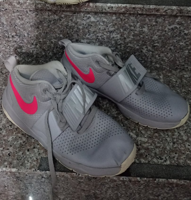 Nike kadın spor ayakkabısı, gri renkte, velcro bantlı ve kauçuk tabanlı,Nike logosu ile dikkat çekici. orjinal değildir