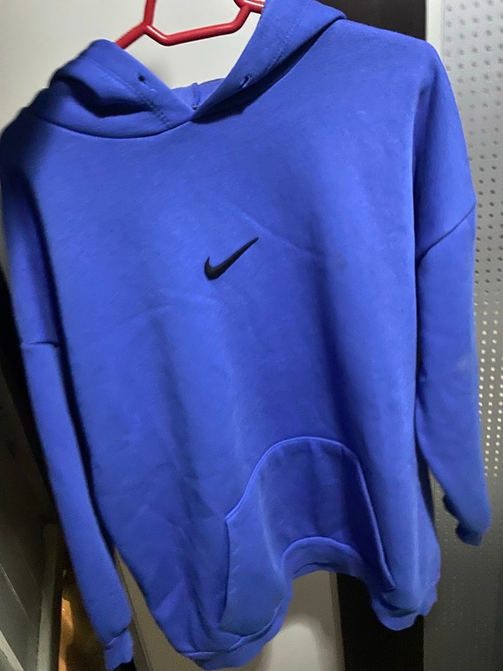 Nike markalı, uzun kollu, kapüşonlu, bol kesim mavi sweatshirt. Yumuşak ve sıcak kumaştan, önü cep detaylı, günlük kullanıma uygun. ♀️