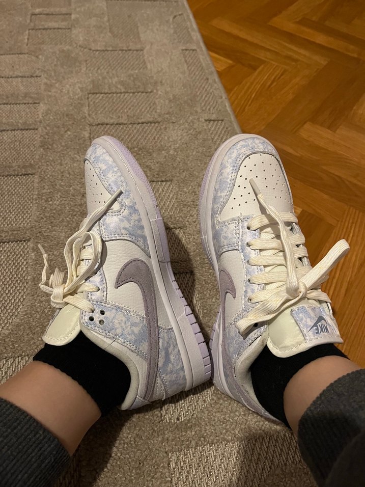 Bağcıklı, beyaz ve lila tonlarında tie-dye desenli tekstil malzemeden kadın spor ayakkabısı, günlük kullanım için uygundur. ürün orijinaldir yurtdısından geldigi icin kutusu ezilmiştir kutusuzdur 36 giyenler kaçırmasın