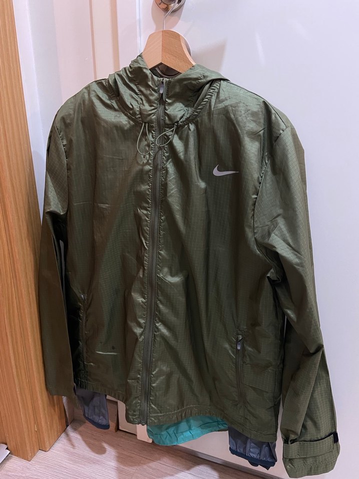 Nike yağmurluk ufak bir kusuru var sanırım yağ lekesi geçirmeye çalışmadım muhtemelen siz başarırsınız..Hiç giyilmedi