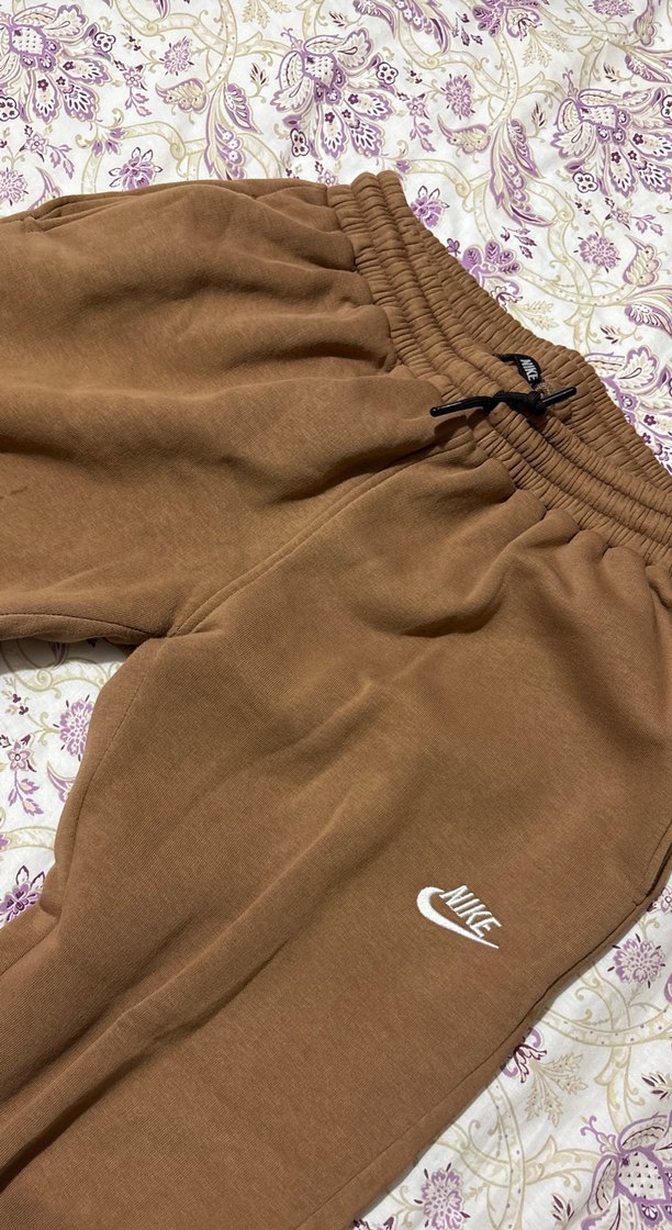 Nike marka, pastel kahverengi, kısa boy, bol kesim kadın eşofman. Bağcıklı bel kısmı ve yumuşak sentetik kumaş ile rahat bir kullanım sunar. Yumuşak kumaş hiçbir sorunu yok