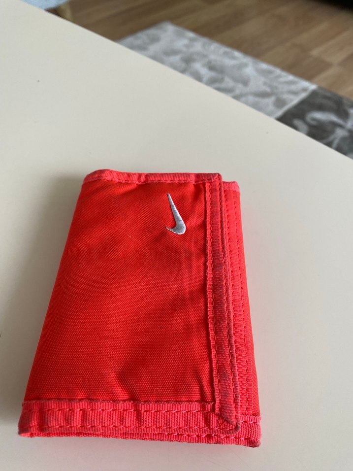 Nike kırmızı kadın cüzdanı, yumuşak ve dayanıklı kumaştan, velcro kapamalı, spor ve günlük kullanıma uygun. Nike spor mağazasından alındı