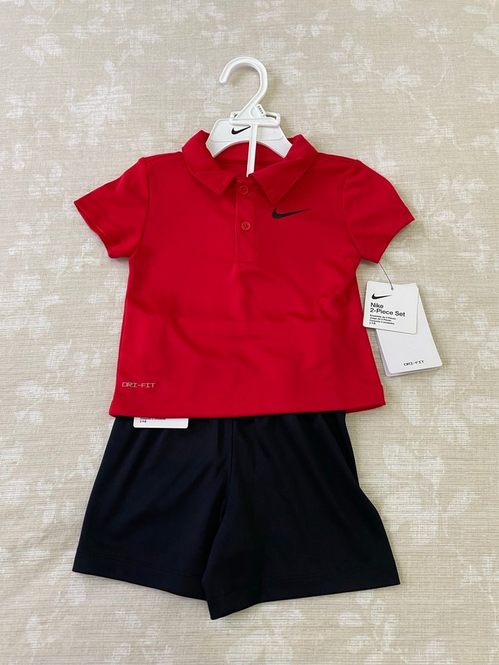 Kırmızı kısa kollu, yakalı üst ve siyah şorttan oluşan, sentetik kumaştan üretilmiş Nike bebek takımı, rahat sokak stili için ideal. Amerikadan alınmıştı hiç giyilmedi sıfır orijinaldir.