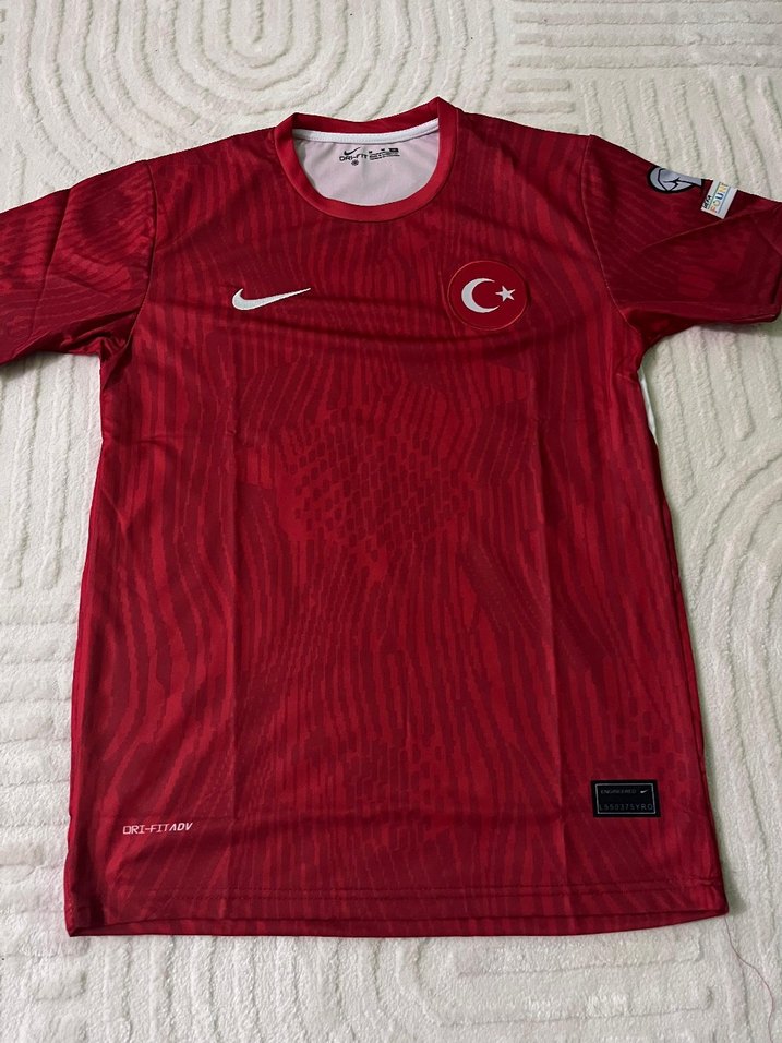 Nike marka kırmızı erkek kısa kollu forma, dar kesim ve yuvarlak yakaya sahiptir. Sentetik kumaştan üretilmiş, göğüste Türk bayrağı amblemi bulunur. Günlük ve sokak stiline uygundur. ⚽
