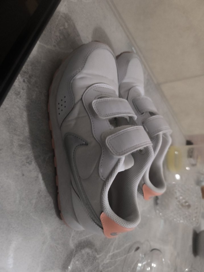 Nike kız çocuk spor ayakkabısı, beyaz ve gri detaylı, cırt cırtlı ve kauçuk tabanlı, trend sokak stili için uygundur.