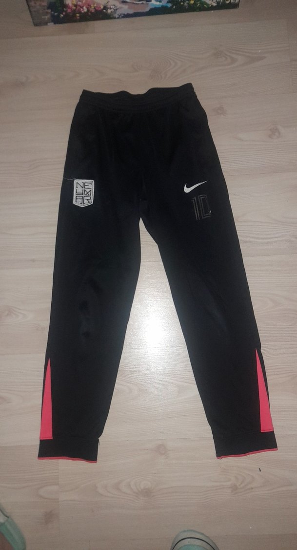 Siyah, dar kesim ve fermuarlı cepleri olan erkek eşofman. Yumuşak ve sıcak kumaştan, kırmızı detaylar ve spor logolarıyla sokak tarzı için uygun. orjinal ,9 /10 yas uygun
