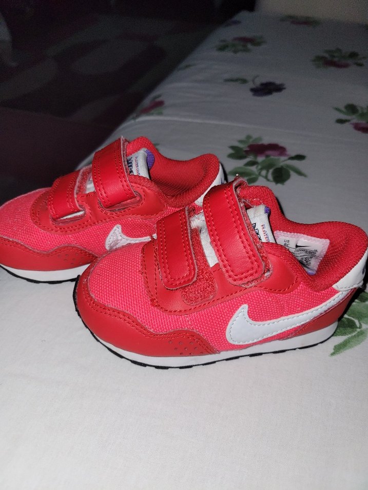 Nike kız çocuk kırmızı spor ayakkabılar, cırt cırtlı ve renkli tie-dye desenlidir, rahat kauçuk tabana sahiptir. Street wear tarzına uygundur.